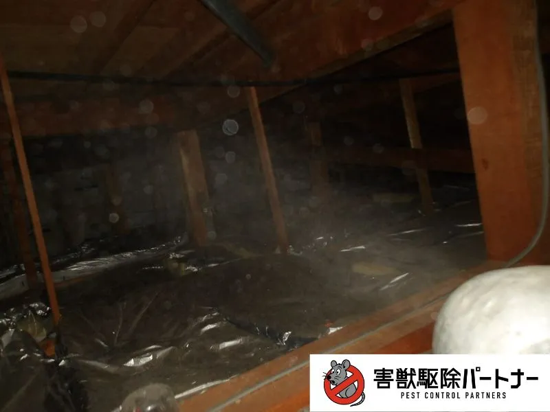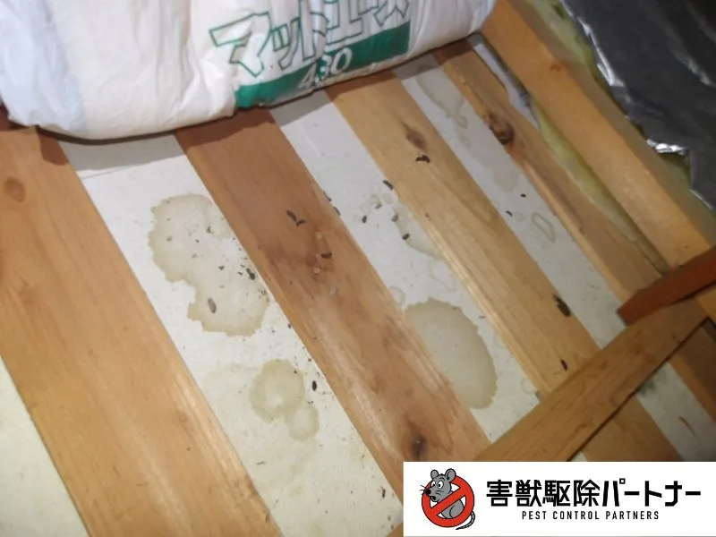 屋根裏でネズミのフンや尿染みのある現場での駆除事例【千葉県柏市】