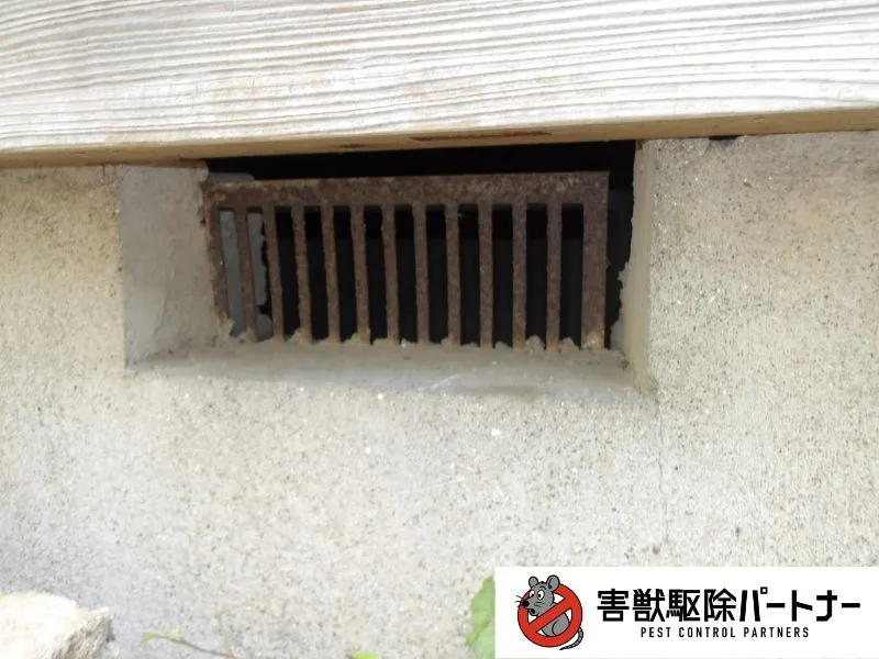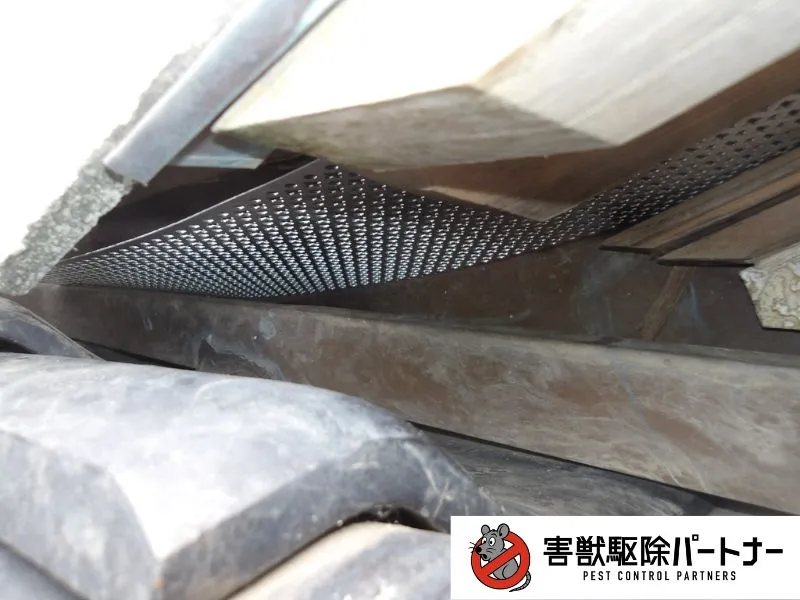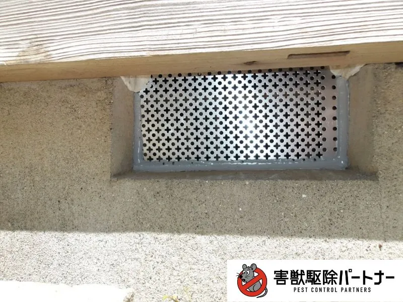 続いて、害獣が侵入している穴を塞ぎます。今回の住宅では床下の通風口や、屋根の重なる隙間などの穴塞ぎを実施しました。