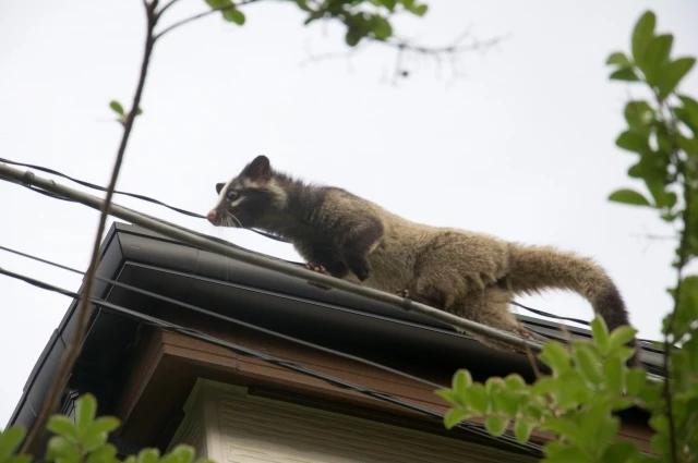 ハクビシンは木登りが得意であり、電線を伝って移動する姿もよく見られています。