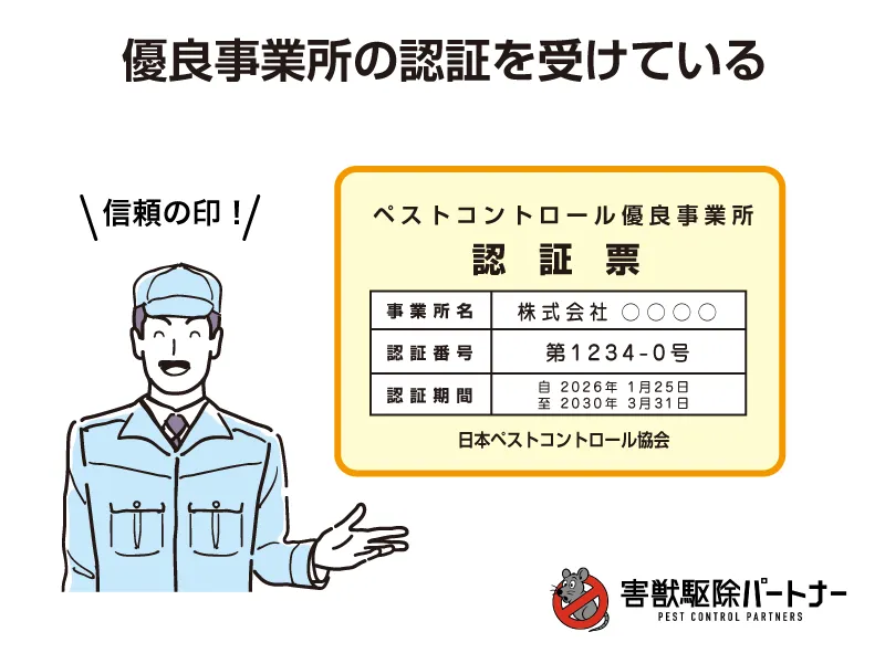 害獣駆除を依頼する際は、その業者が「優良事業所」の認証を受けているのかを確認しましょう。