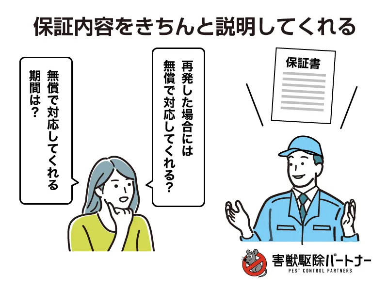 害獣駆除工事では作業後に保証が付く事があります。しかし保証内容や期間は業者によって様々で、たとえば保証が3カ月で終了する業者もあれば10年保証を謳う業者も存在します。