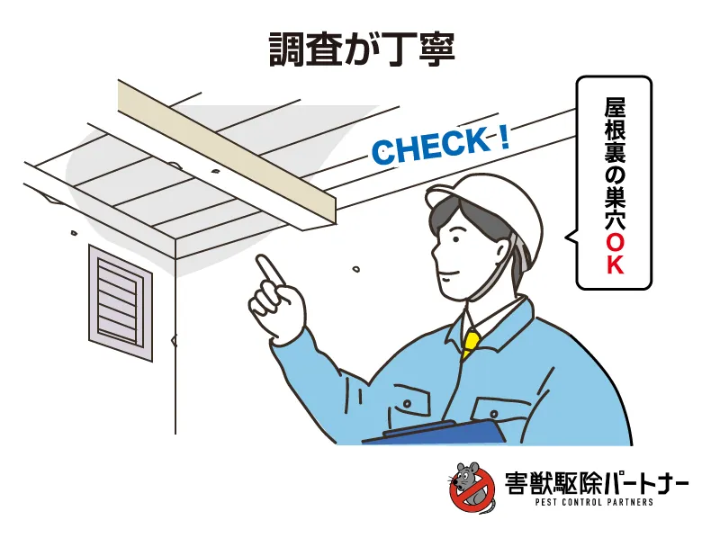 実績が多ければ多いほど、その住宅や被害に最適な駆除方法の提案ができるので、なるべく実績豊富な業者を選ぶようにしましょう。