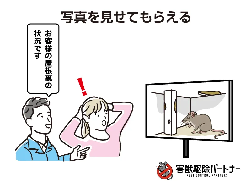 調査の際には先述したように屋根裏や床下の調査を行います。その際に被害の状況を口頭だけではなく写真などを見せながら説明してくれるかどうかも重要です。