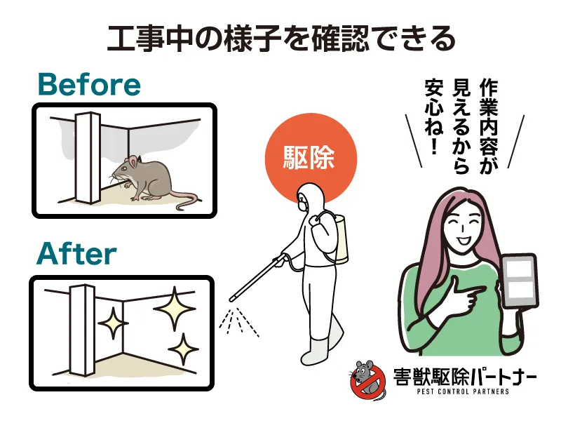 業者によっては、こうした作業中の様子を写真や動画で残しつつ、後でお客様に確認いただけるようなサービスを行っている業者も存在します。
