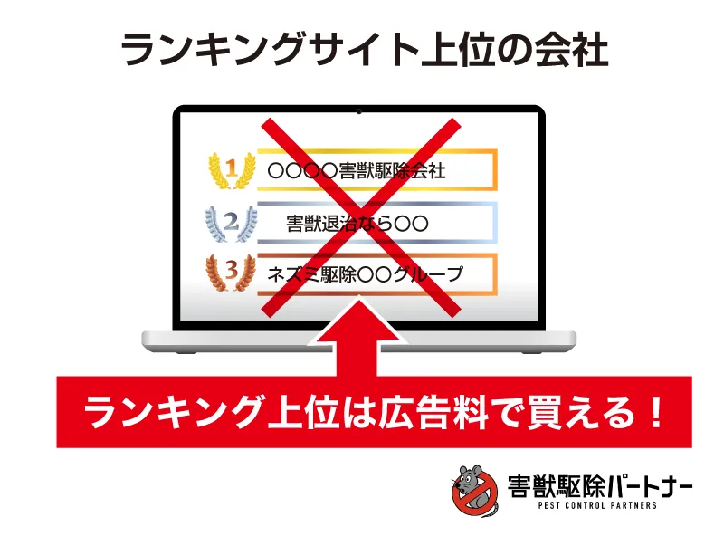 こうしたランキングサイトは広告収益によって成り立っており、より多くの掲載費用を支払ってくれる業者を優先的に上位にします。またお客様からの問い合わせを増やすために、表記価格が安い業者を優遇する傾向にあります。
