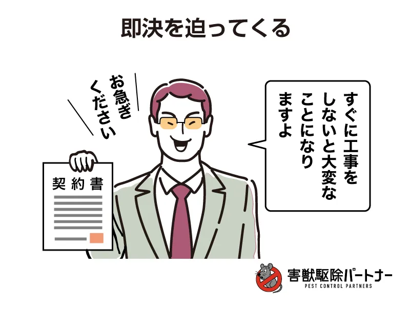見積もり提出後に、その場ですぐに契約を迫ってくる業者には注意が必要です。