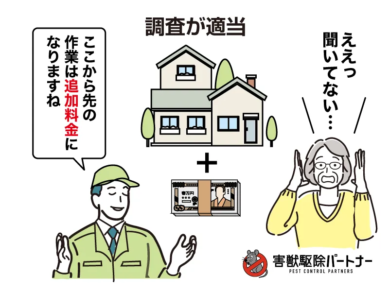 こうした割増料金が悪い訳ではありませんが、通常の駆除料金からあまりにも高額になるようであればよく検討するようにしましょう。