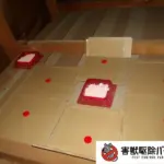 続いて、粘着シートや毒エサの設置を行います。