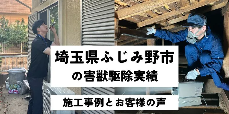 この記事では、害獣駆除パートナーが埼玉県ふじみ野市で行ってきた害獣駆除の実績や事例、お客様の声、地域の特色などを紹介します。埼玉県ふじみ野市にお住まいで害獣被害にお悩みの方はぜひ害獣駆除パートナーにご相談下さい。