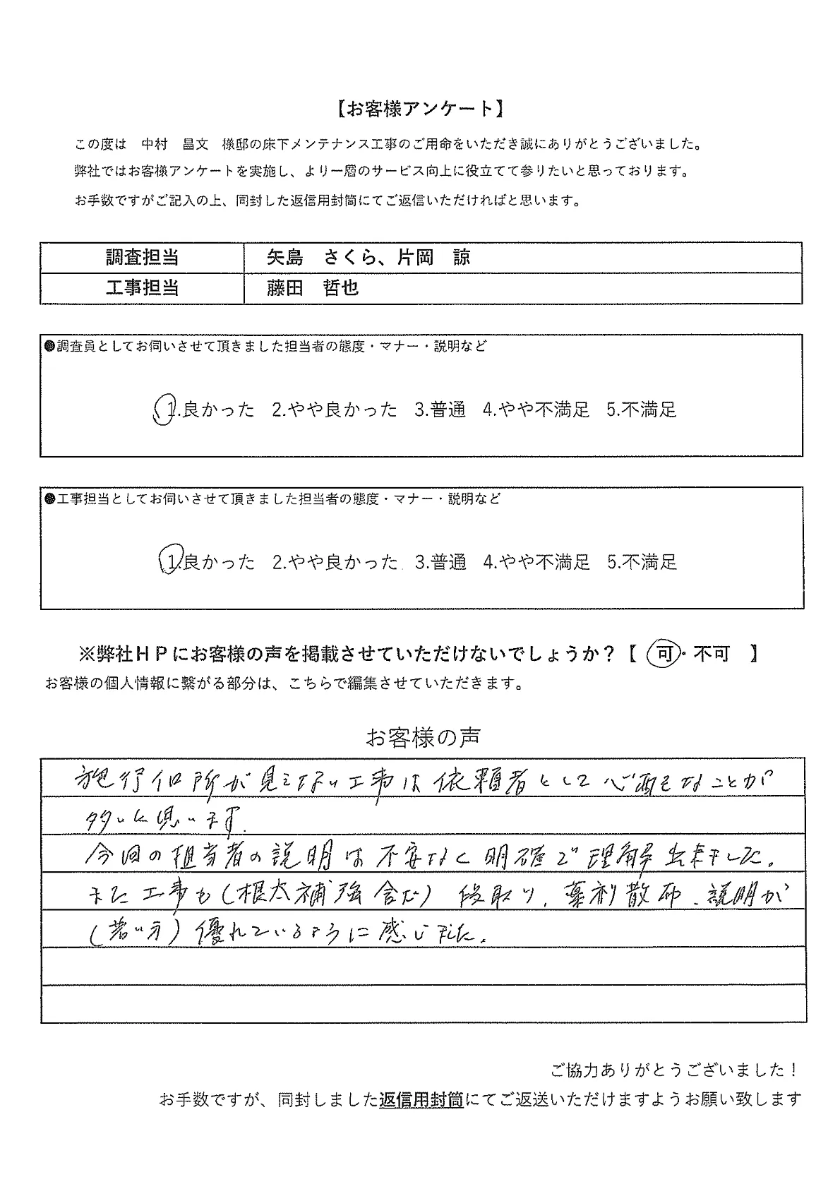 また工事も段取り、薬剤散布、説明が優れているように感じた。