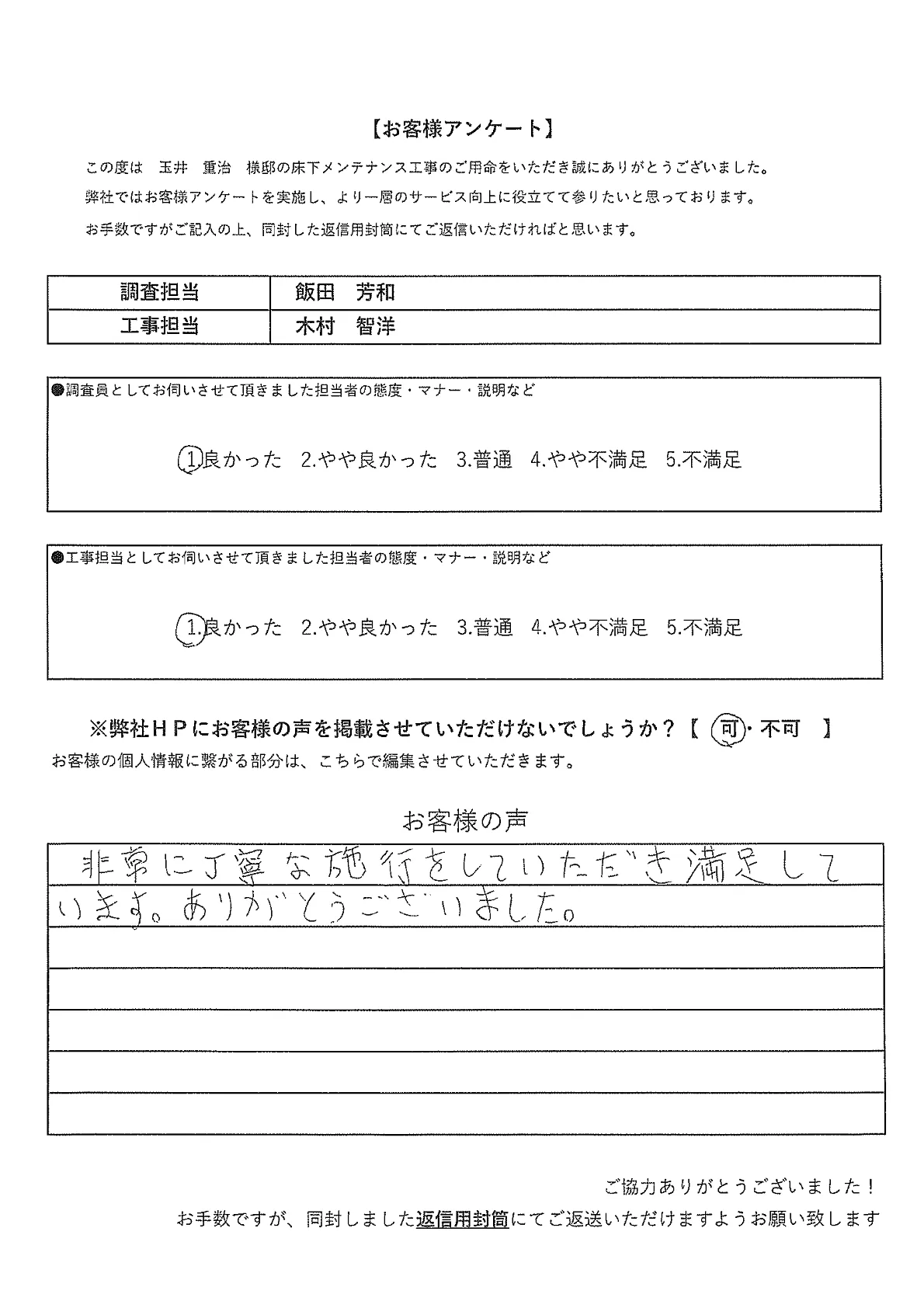 非常に丁寧な施工をして頂き満足しています。ありがとうございました。